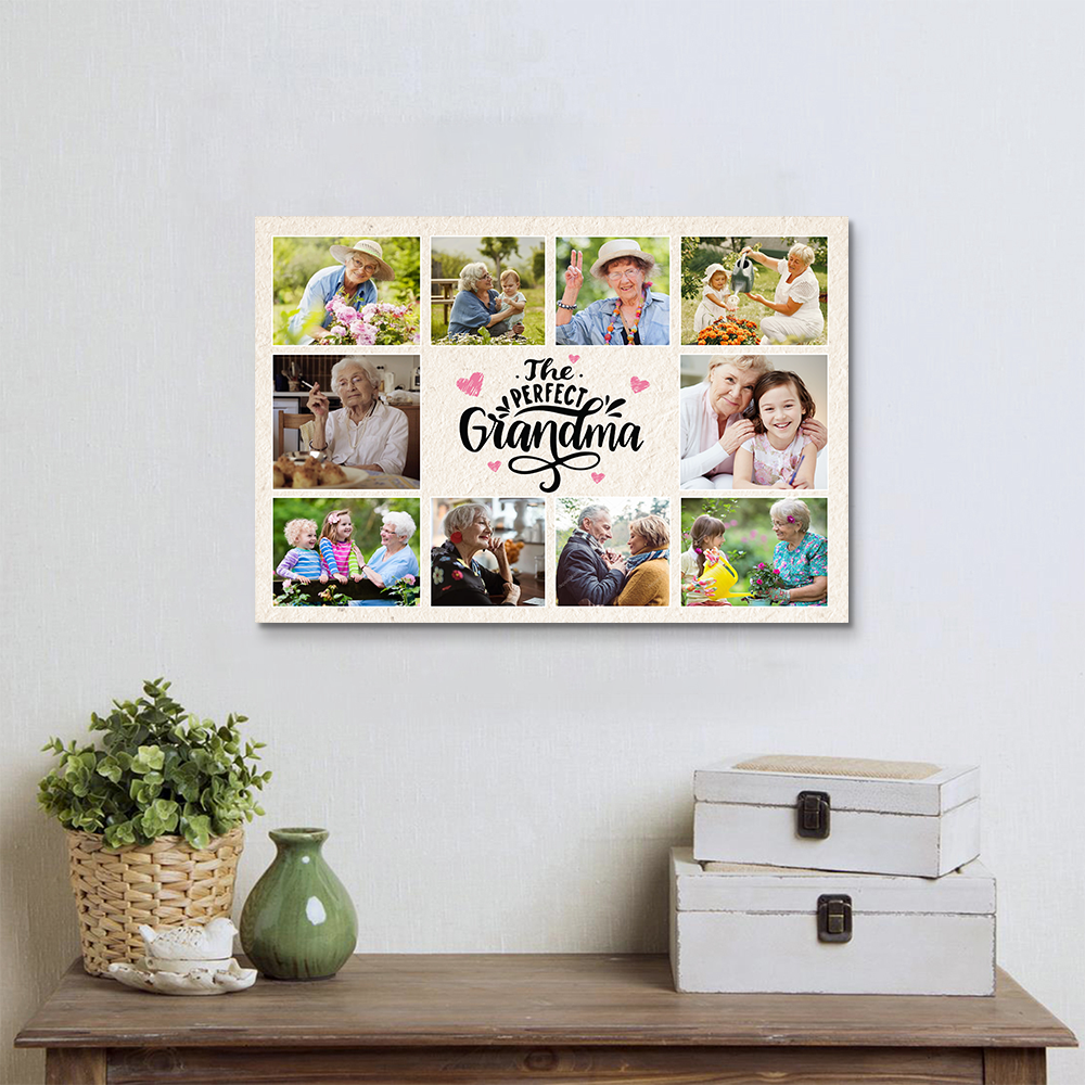 Celebrate the unconditional love and joy your grandmother brings with our "The Perfect Grandma" canvas. This beautiful piece features customizable photo slots where you can add up to ten cherished photos, making it a perfect and meaningful gift for any occasion.
